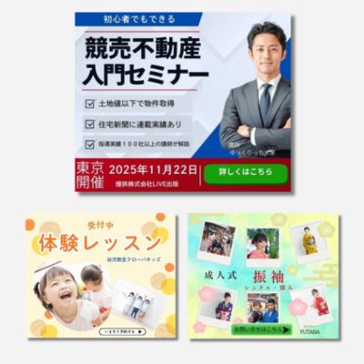 バナー・サムネイル・ECサイト画像など、お客様の興味関心を引き出し、クリックというアクションを起こしてもらうための大切なツール。お客様のイメージを丁寧にヒアリングし完全オリジナルの伝わるバナー・ヘッダーを制作させていただきます。